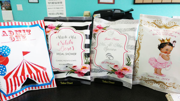 At eXprs Printing we provide customized chip/popcorn bags. These make handy favours and loot bags for any kind of event either at home or for a corporate event.